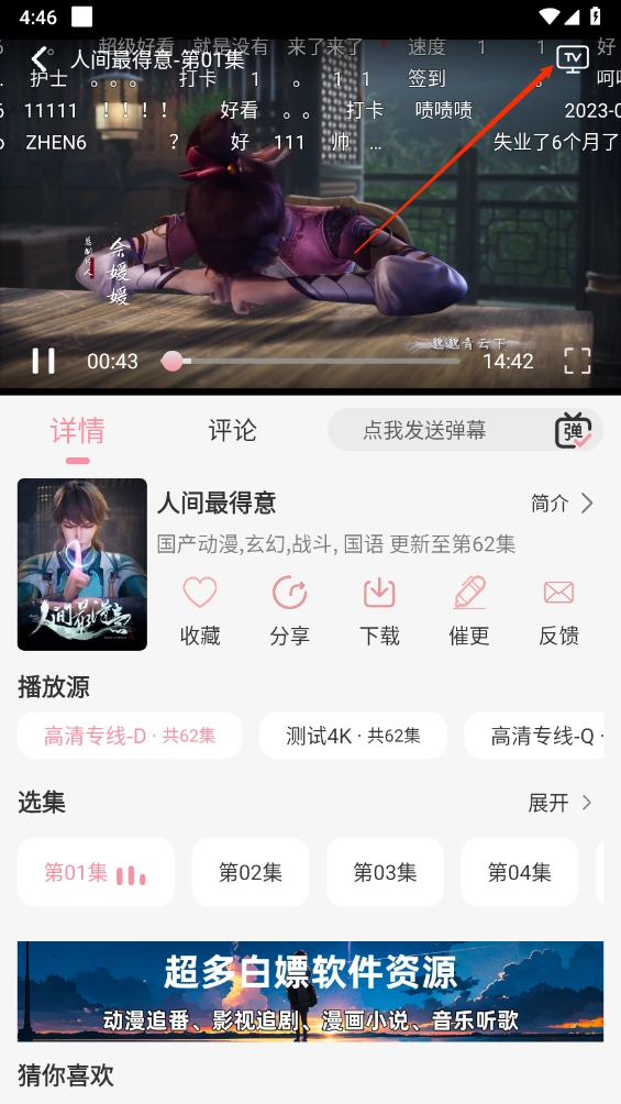 1、在首页选择需要投屏的动漫。