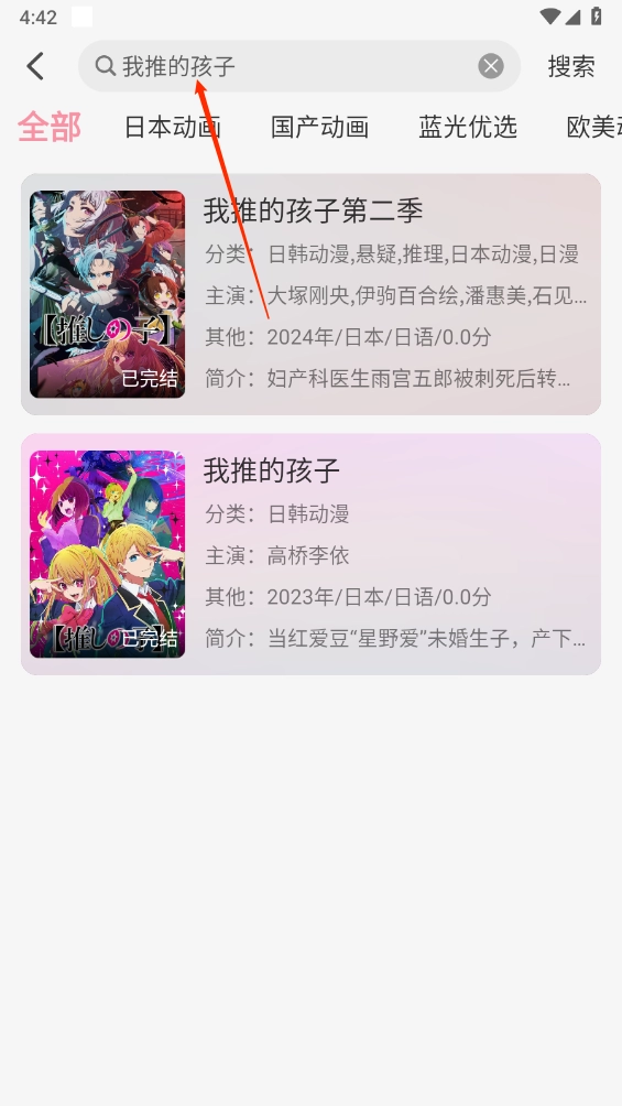 3、也能通过上方的搜索框一键查找自己喜欢的动漫,具体可参考图示。