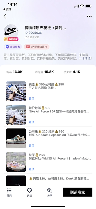2、点击您感兴趣的商家,即可查看鞋子的价格、款式以及详细的图片信息。