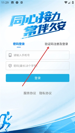 1、在登录页面点击【验证码注册及登录】选项,即可切换到验证码登录/注册的操作界面。