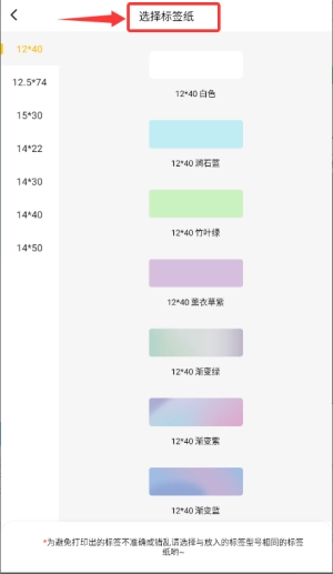3、进入标签纸选择界面后,选择合适的规格和颜色,就能完成标签的创建。
