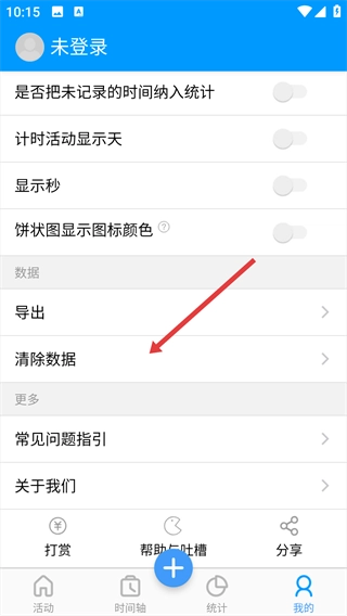2、在个人中心页面,找到【清除数据】选项并点击。