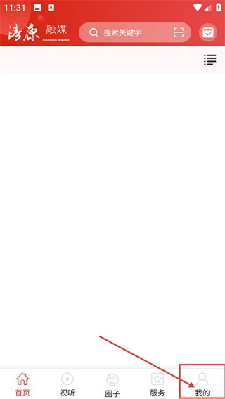 1、进入【清源融媒】首页后,可使用顶部的搜索功能,点击底部的【我的】按钮就能进入个人中心页面。
