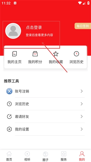 2、进入个人中心页面后,点击【点击登录】的区域,就能跳转到用户登录页面,完成登录操作后,就可以查看更多的内容和功能了。