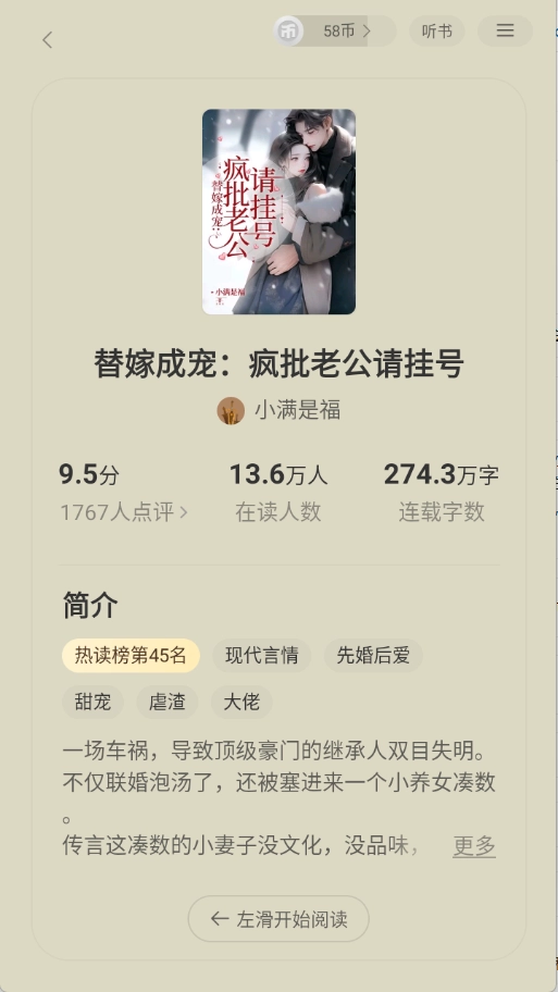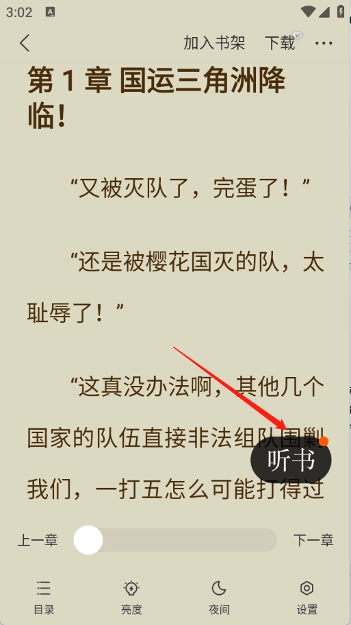 1、打开小说进入详情页,点击屏奴区域任意位置即可呼出菜单栏。