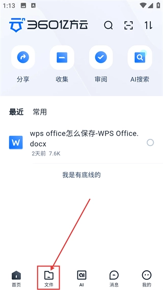 1、在360亿方云首页点击底部的【文件】选项,即可进入文件管理页面,查看各类文档资源。