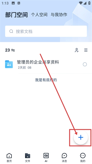进入文件页面后,点击右下角的加号按钮,即可打开操作菜单,从中选择上传或新建文件的选项。