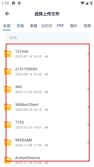 4、点击【本地上传】选项后,系统会跳转至文件选择界面,此时你可以从本地的文件夹列表中找到并选定需要上传的文件。