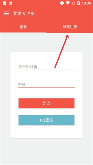 3、进入【登录&注册】页面后,点击【邮箱注册】选项,切换至注册表单界面,准备填写注册所需的各项信息。