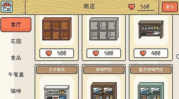 3、这里有超多家具与时装道具可供你用红色爱心兑换,还能将这些物品整齐有序地摆放好。