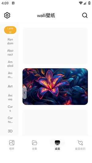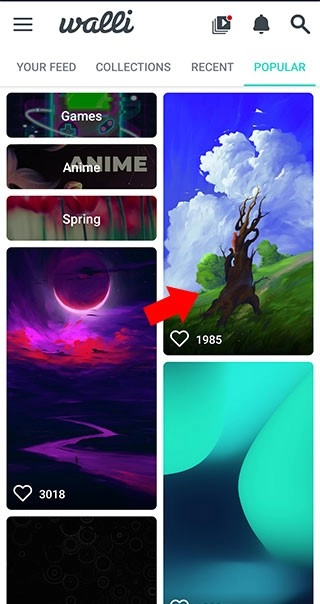 1、接着打开walli壁纸,选择自己心仪的壁纸类别,然后从中找到喜欢的壁纸并点击它。