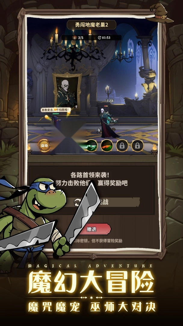 勇闯地魔老巢的玩法为通关模式,每个关卡包含5个小关卡。玩家需在限定时间内击败关卡boss才能成功通关,通关后可领取钻石、魔咒券与伙伴券作为奖励。