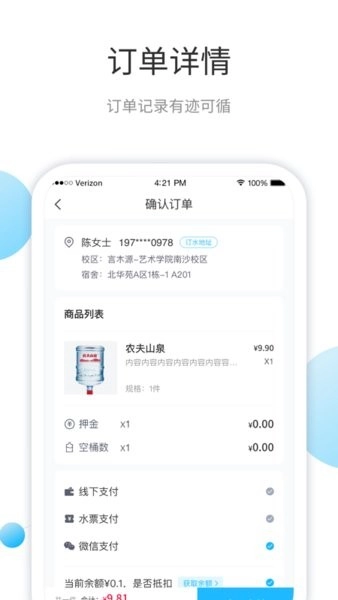 绑定支付:支持支付宝、微信支付,部分学校需缴纳押金(首次订水时支付,同一宿舍无需重复缴纳)。
