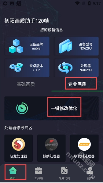 3、进入专业画质页面后,可通过点击一键修改优化功能来调整画质,也能手动进行画质修改。