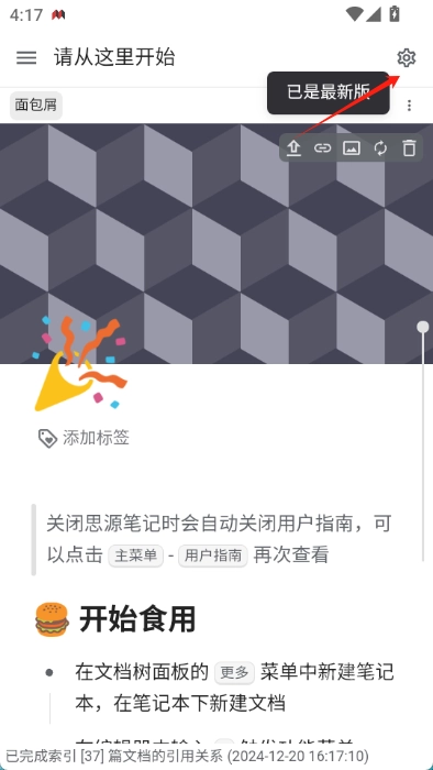 1.点击思源笔记右上角的设置图标