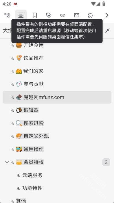 3、本地离线功能:支持离线状态下使用,数据可存储于设备本地,也可通过第三方网盘或思源自带的备份功能进行备份。
