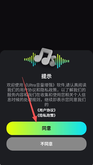 1、在手机上启动该软件,当出现提升窗口时,点击其中的“同意”按钮。