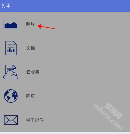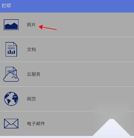 2. 根据你需要打印的文档类型选择对应的功能,这里以打印照片为例,其他文档的打印操作也类似。