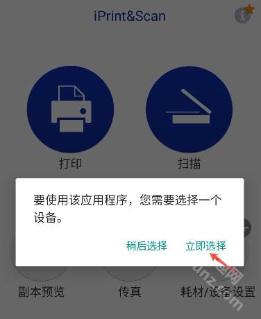 1. 安装兄弟打印机的iPrint&Scan应用程序,安装完成后将其打开,然后点击“立即选择”按钮。