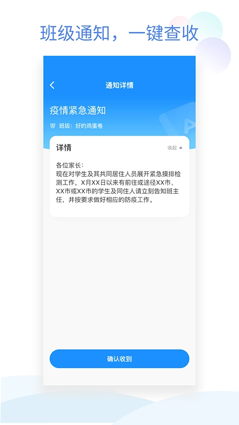 4、班级通知、防火、防溺水、假期通知、家长会等信息会实时推送提醒;