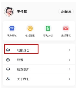 1、在我的界面点击切换身份