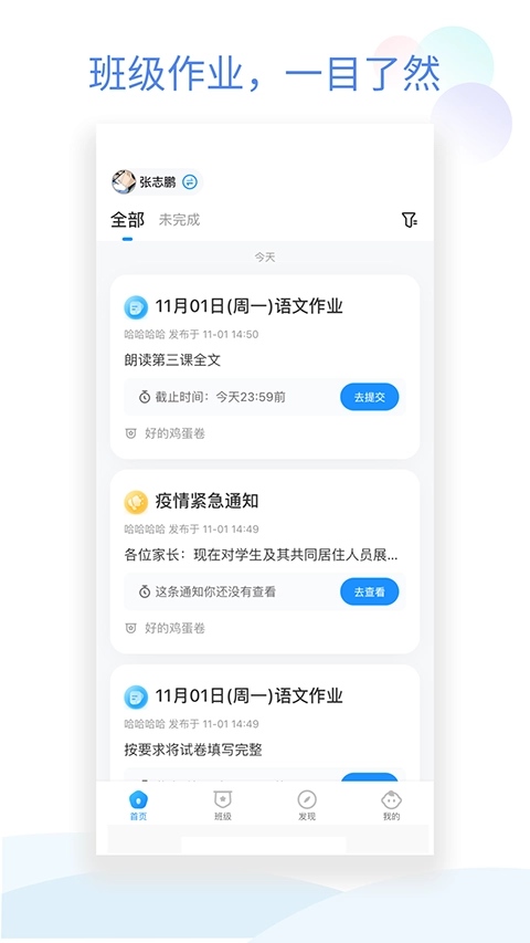 1、我们会展示班级作业情况,作业发布时老师会第一时间通知您;