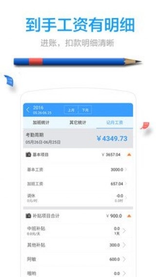 3、支持自定义工资与考勤周期,作为一款实用的考勤助手,能帮助您轻松记录每日加班情况。