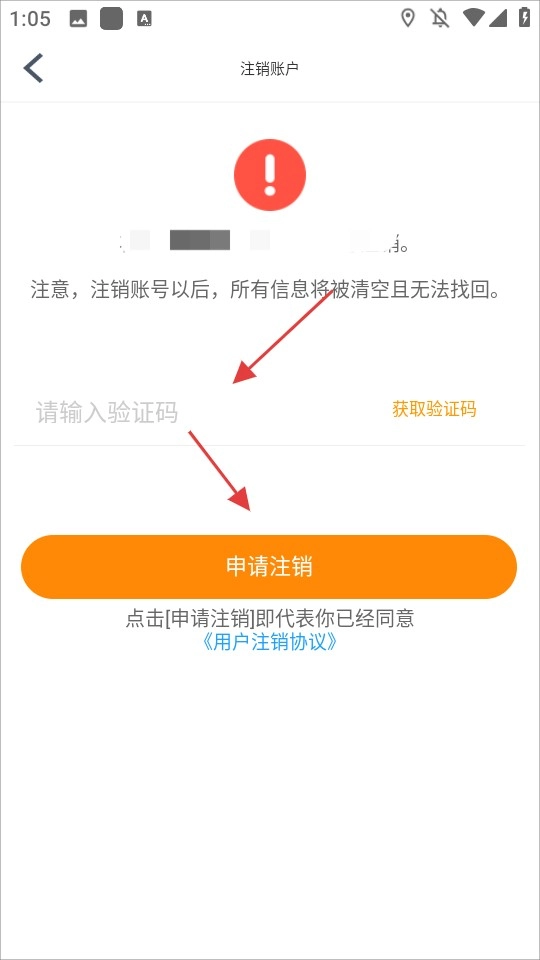 4、填写验证码后,点击【申请注销】按钮,就能提交账户注销的申请。