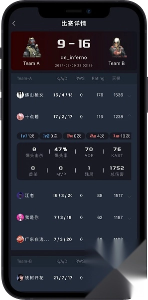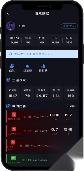 4、实时记录统计系统能够实时记录CSGO每一局的各类数据,便于玩家知晓自身及他人的等级变动情况。