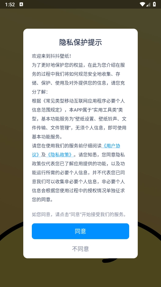 1、安装抖抖壁纸,同意相关的政策与协议进入。