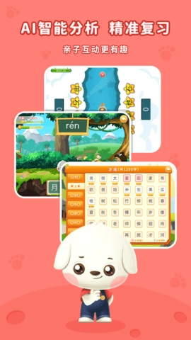 哆哆识字里有原创绘本、童谣、古诗等多样主题场景内容,能让孩子在学习时体会到乐趣与兴趣。这些内容既能帮助孩子认识汉字,又能启发他们的想象力和创造力。除了丰富的内容,哆哆识字还设有智能记忆亲子游戏,这是个趣味认知互动类游戏。孩子可以在游戏中通过感知跟读、辨识指认、识记认读等科学步骤,逐步提升语言能力和认字水平。这款游戏不仅有助于孩子学习汉字,还能增进亲子间的互动与沟通。