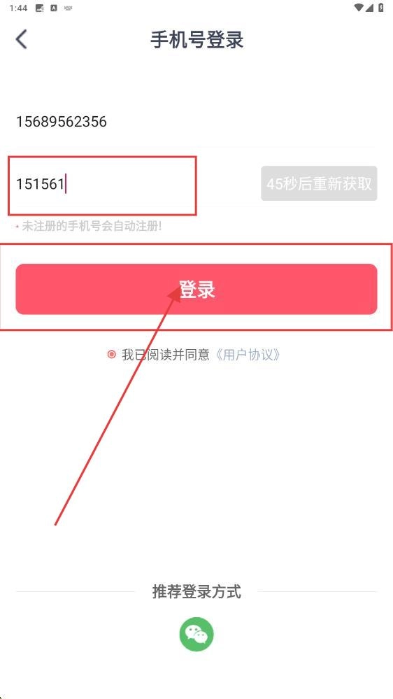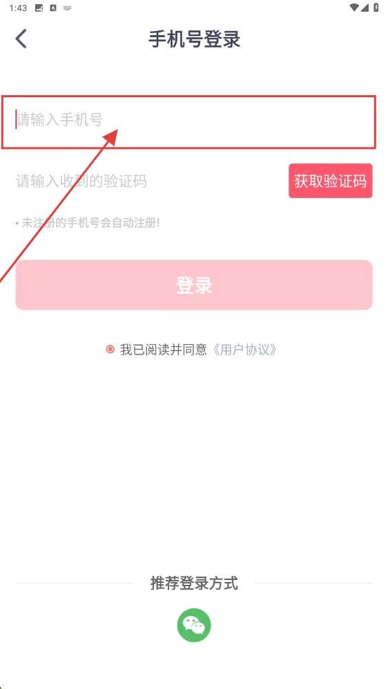 1、打开应用,填写手机号。
