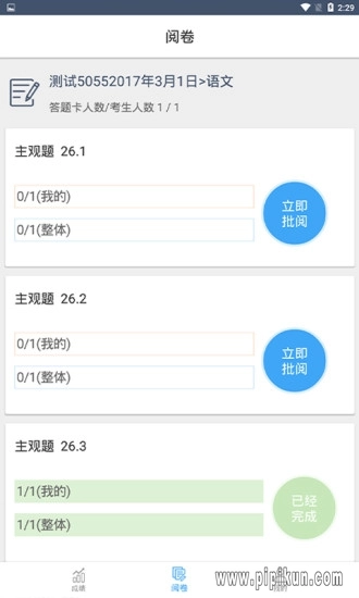 按班级进行批阅:支持绑定批阅功能,并且会显示当前正在批阅的题目的已阅平均分。