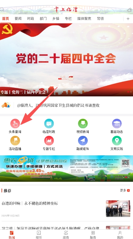 1、在首页中点击“头条要闻”进入相关列表。