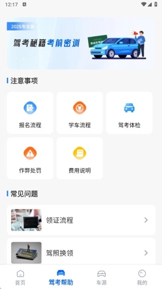 3、驾考帮助页面汇聚实用备考资料,涵盖考试注意事项、常见问题解答等内容,助力梳理备考要点。