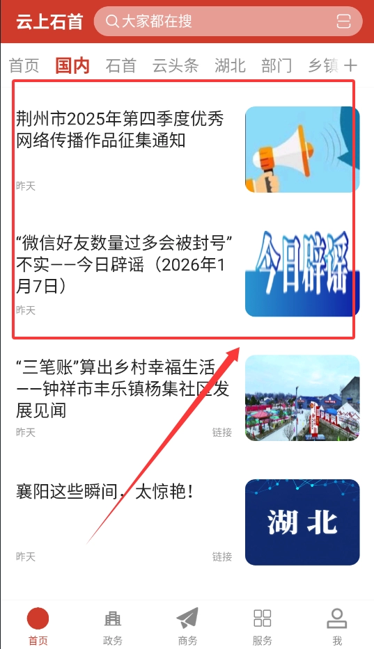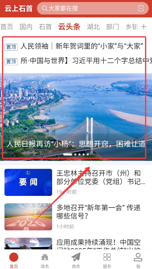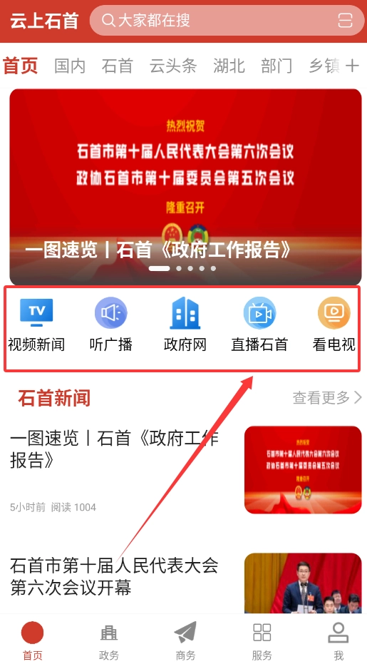 1、就能看到“石首新闻”等重要会议报道,往下滑动还能找到视频新闻、听广播和政府网等实用板块哟。