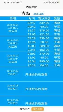 它是赶海前必看的「时间指南」,是海钓时必不可少的「黄金时段计算器」,是潜水冲浪爱好者的「安全气象卫士」,更是滨海自驾游、亲子沙滩游的「行程规划助手」。不管你是经验丰富的渔民、刚入门的钓友,还是周末去海边游玩的城市玩家,大鱼潮汐都用简单的操作,提供专业的海洋信息服务。