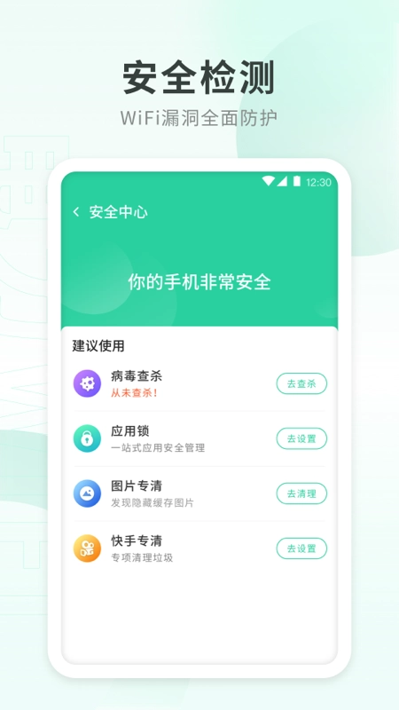 2、手机安全检测功能可帮助用户及时检测并查看手机加密状态、DNS劫持情况、网络安全等信息,从而降低应用使用过程中的风险。