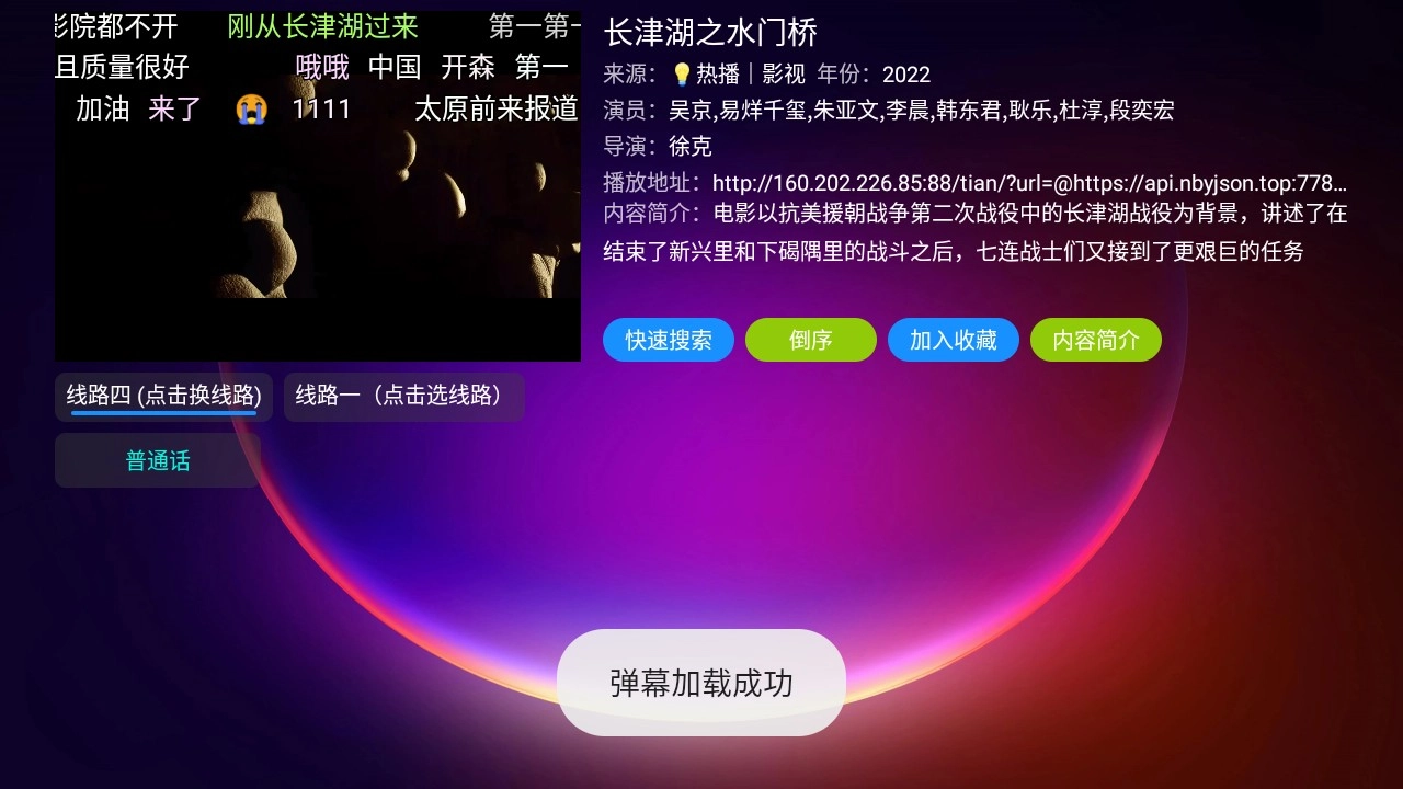 4.进入播放页面,支持收藏、切换播放源等操作
