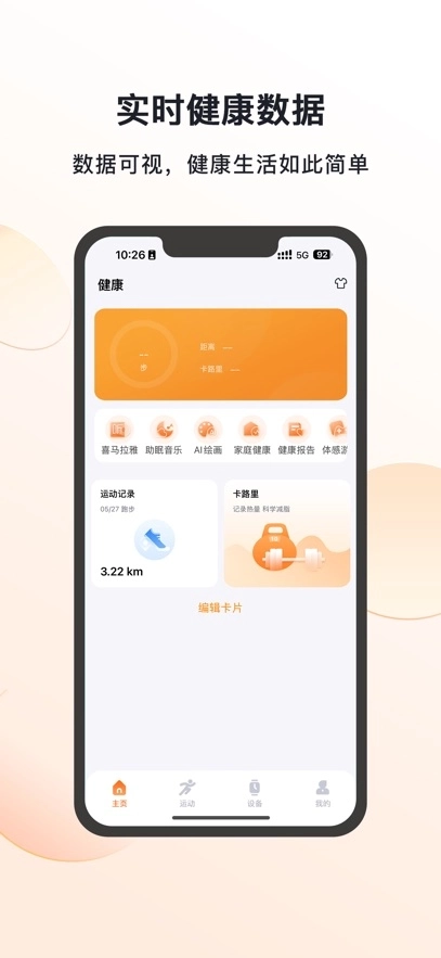 健康监测功能能够实时展示各项健康指标,同时提供营养热量的管理服务以及健康报告的专业分析。