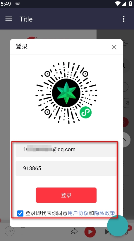 5、回到主页面,输入QQ邮箱账号和刚才获取的验证码,点击登录按钮就能完成登录操作了。