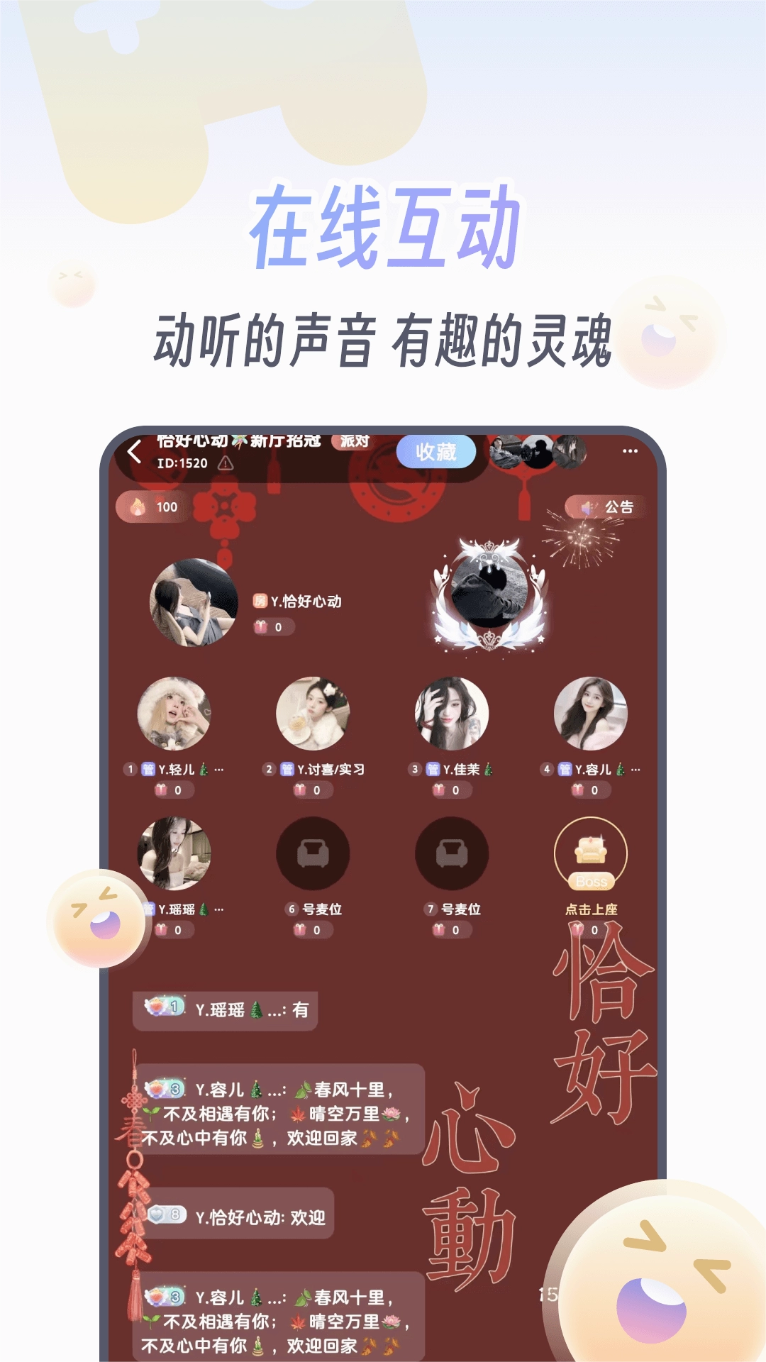 你可以进入感兴趣的语音聊天室,和其他用户畅快地交流互动。