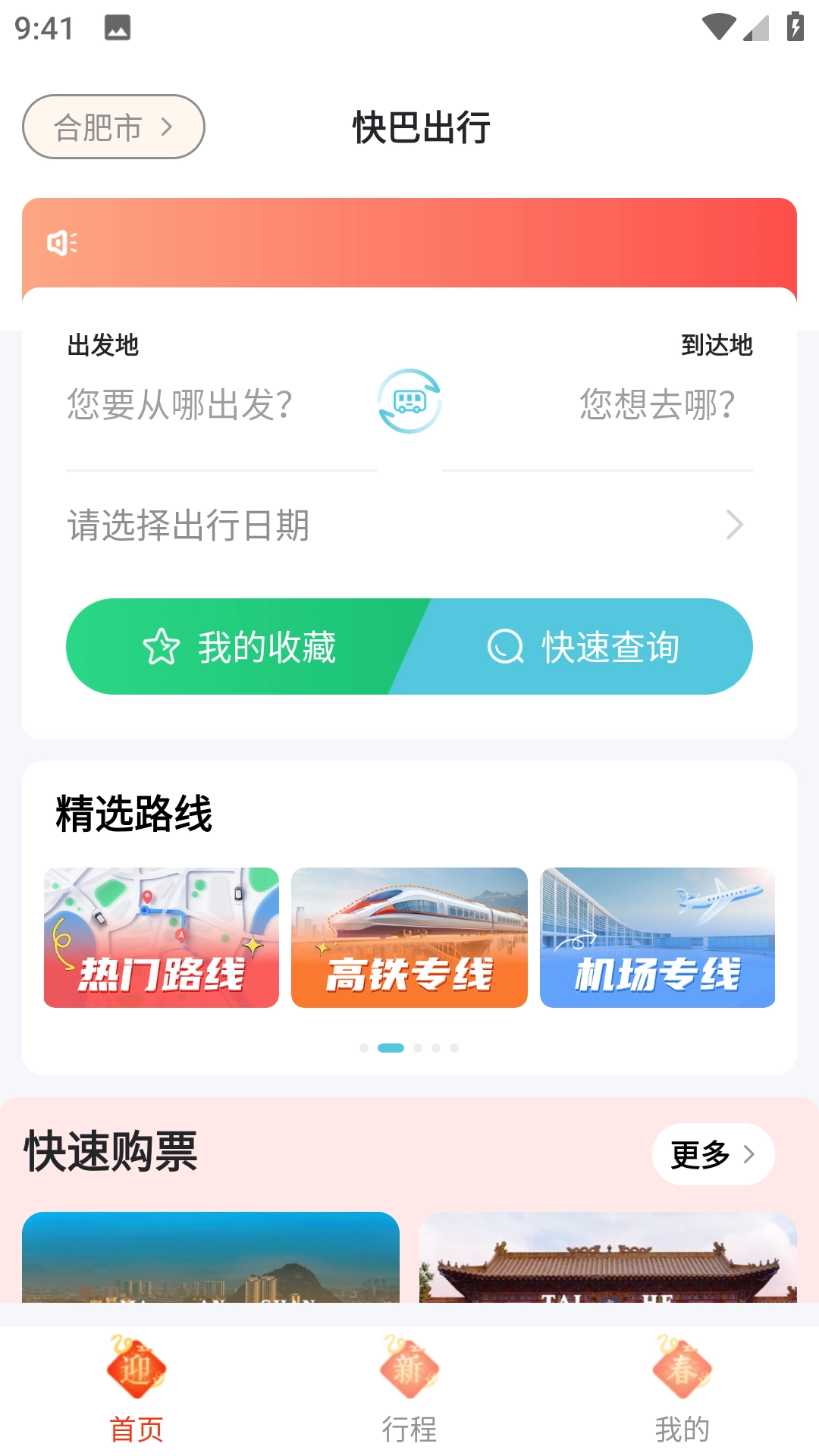 快巴出行是一款优质的出行服务软件,用户能借助它预约定制各类巴士专线,无论是中小型客车还是大型客车,都能通过软件轻松完成预约定制。像公司团建、家庭出游这类活动,都可以用这款软件来定制专属班线,还能自由设置出发地和目的地,使用起来便捷又实用!