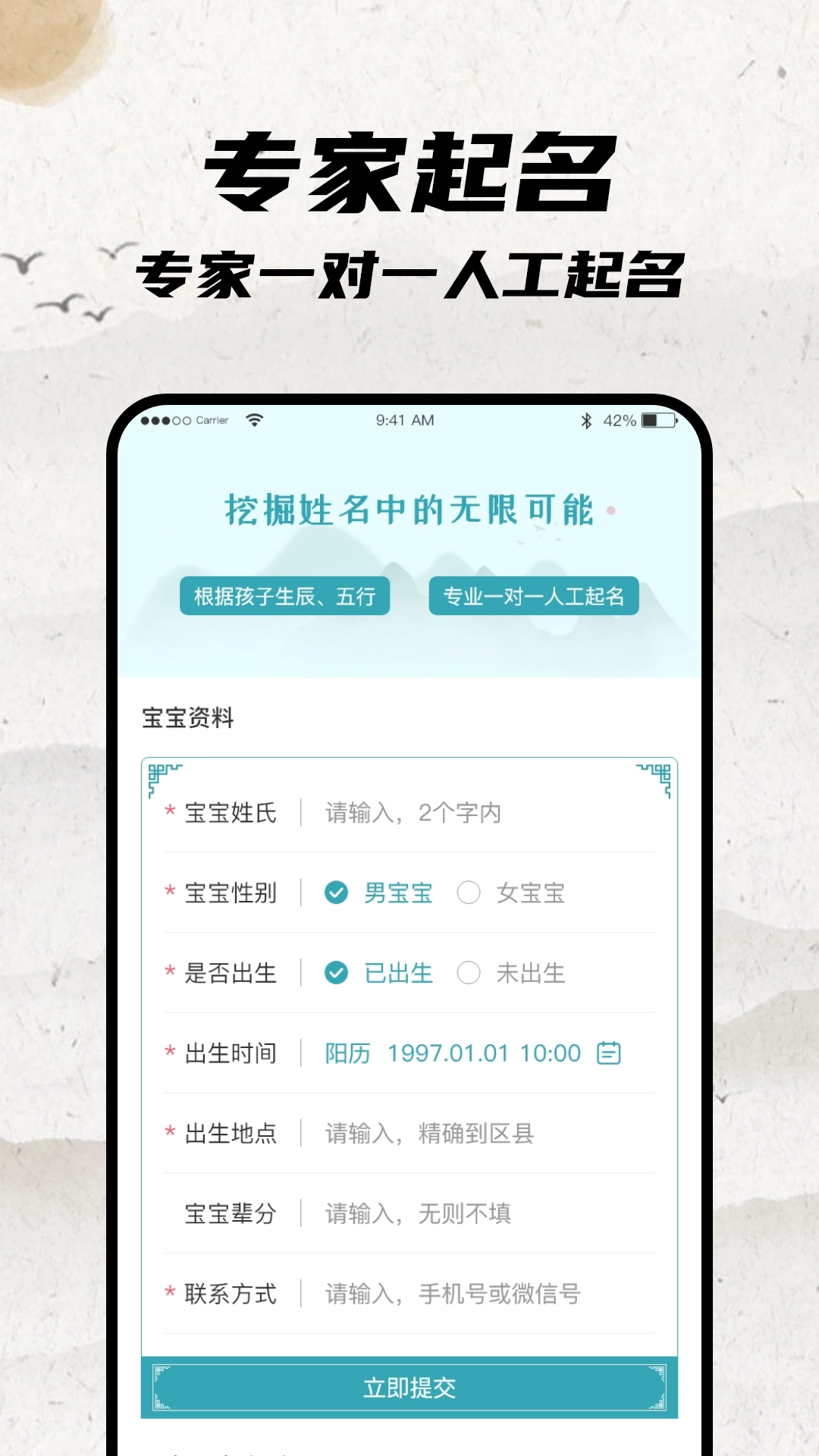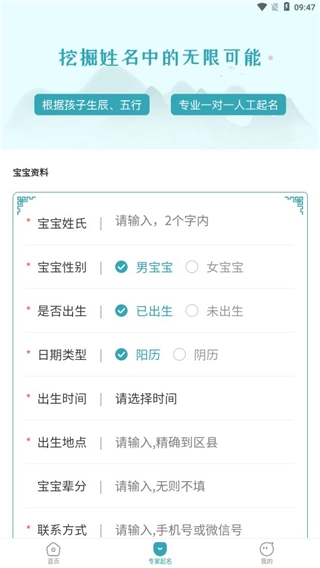 用户还能点击专家起名,输入孩子的各类基本信息就可以了。