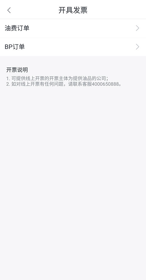 接着再依据自身实际的开票需求,选择【油费订单】或者【BP订单】。