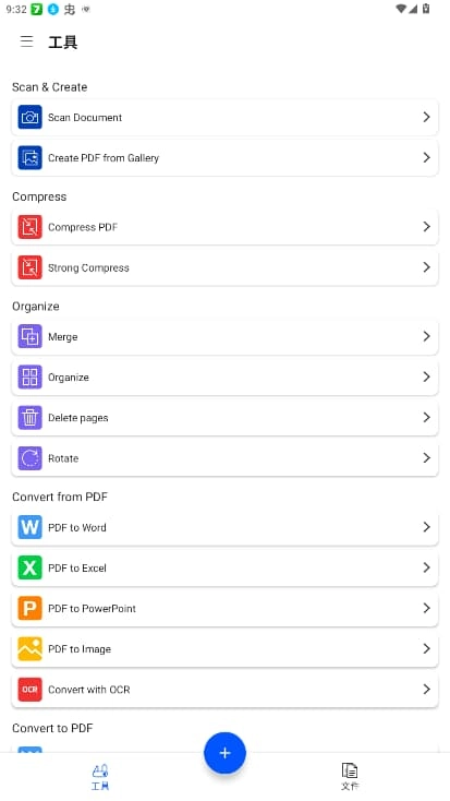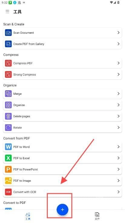 进入软件后,点击首页底部的“+”按钮,添加需要进行转换的文件。