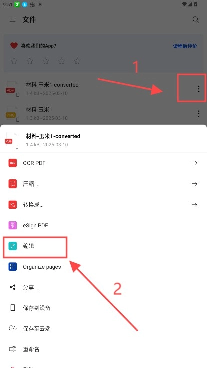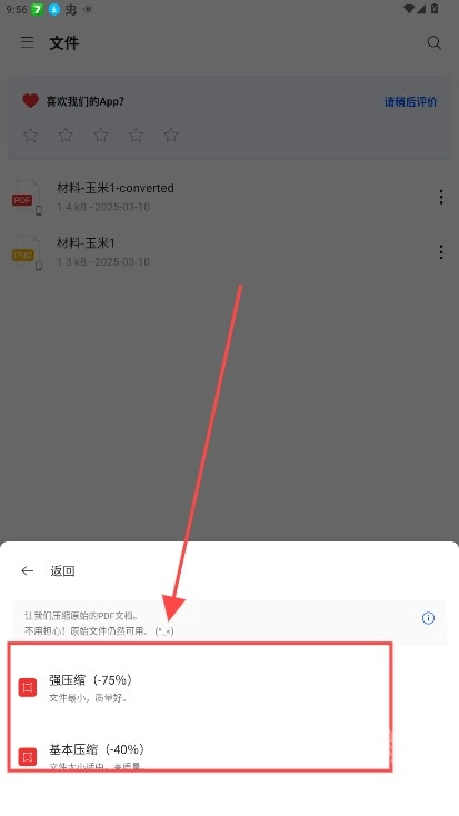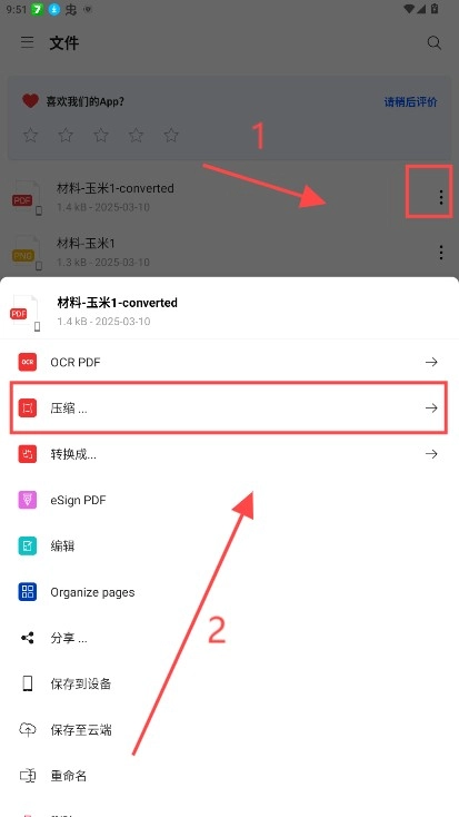 选择pdf文件后三小点进入,再选择压缩点击进入