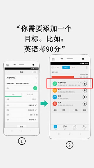 当你为了某个目标付出时间时,点击记录按钮启动计时,这些被记录下的时长,便是你对目标的有效投入。