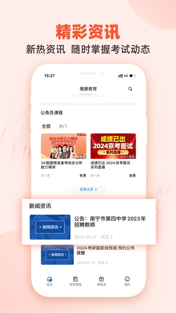 展鹏教育软件是一款助力用户高效学习的优质工具,能针对不同用户定制个性化的学习计划与课程内容,帮助用户在较短时间内收获显著的学习提升。平台还提供丰富的历年真题资源,便于用户进行模拟演练,及时掌握最新考试的重点与注意事项。此外,软件会依据科学方法规划每日学习时段与时长,在合理分配注意力的前提下,有效促进学习成绩的提升。所有教学视频均支持反复观看,助力用户巩固核心知识点。