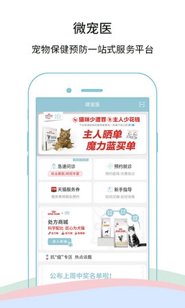 微宠医作为一款医药咨询类应用,致力于为宠物主人提供便捷的宠物医疗保健服务。借助微宠医,用户不仅能预约宠物医院、获取专业的宠物健康咨询,还可购买皇家宠物食品ROYALCANIN的处方粮。